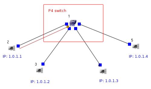 Open vSwitch to build a topology in EstiNet X platform. Or extract a compressed file P4_l2_switch_example.tar.bz2. There are two examples P4_l2_switch_exampleA and P4_l2_switch_exampleB in this compressed file. Please open file [P4_l12_switch_exampleA.xtpl] firstly.